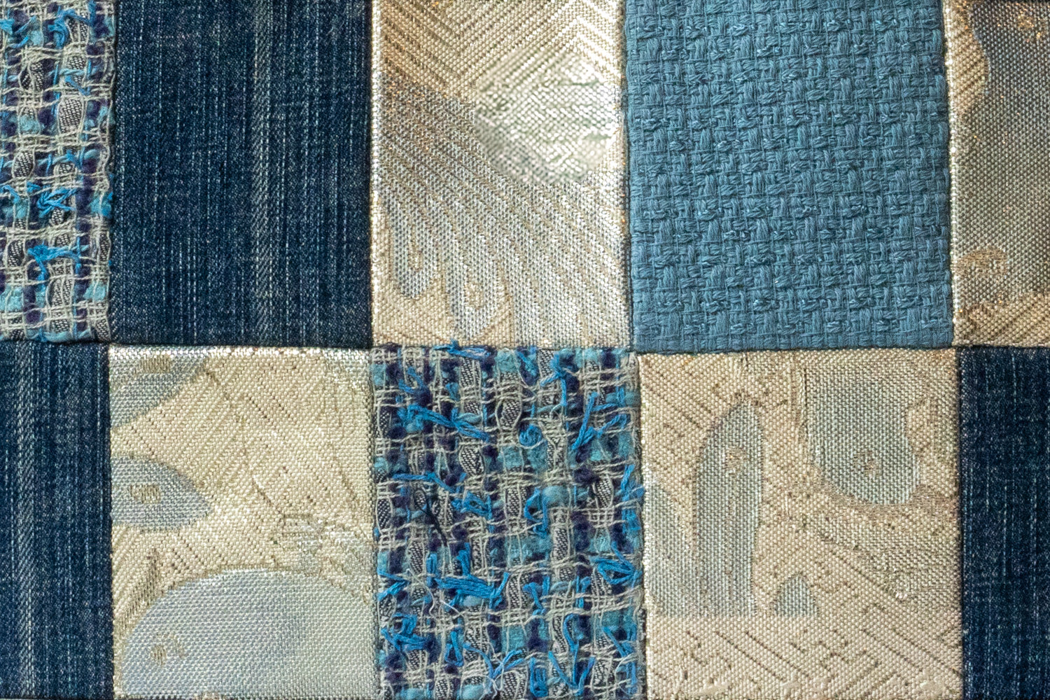 吉野格子帯は、「万能最強」とも称される織組織で、沖縄に伝わる浮織の一種です。地の部分は平織で織られており、縞や格子の模様を、真田紐のような組織で織り込む独特の技法が使われています。この伝統的な織り方によって、耐久性と美しさが両立した帯が生まれました。